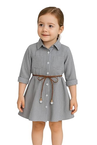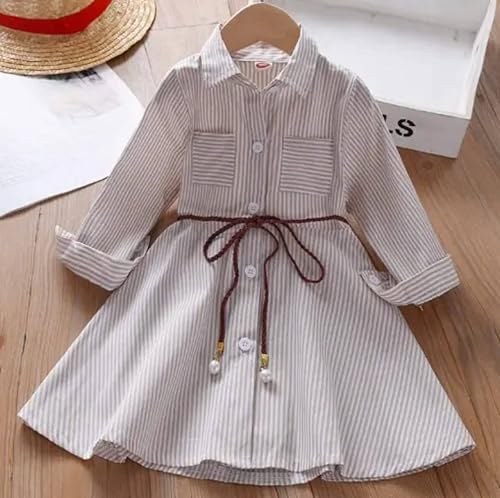 Meza - فستان قميص بناتي بأكمام طويلة وخطوط كلاسيكية تصميم عملي أنيق للبنات خامة مريحة مثالية للخروج والاستخدام اليومي من ميزا