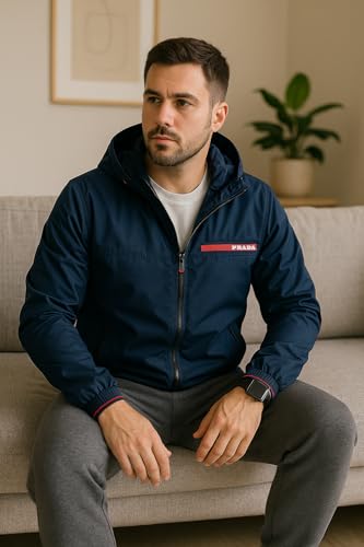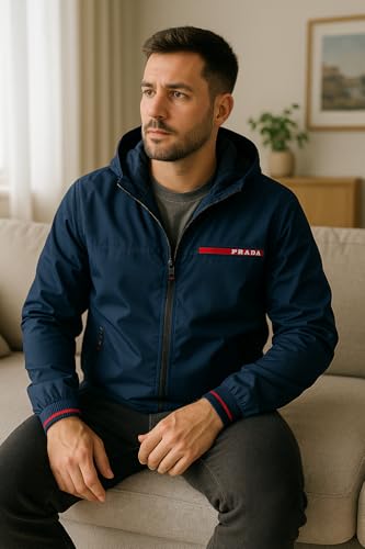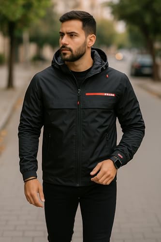 Meza - جاكيت رجالي رياضي شتوي بسوستة أمامية وكابيشو مع تفاصيل حمراء للشباب والرجال من ميزا