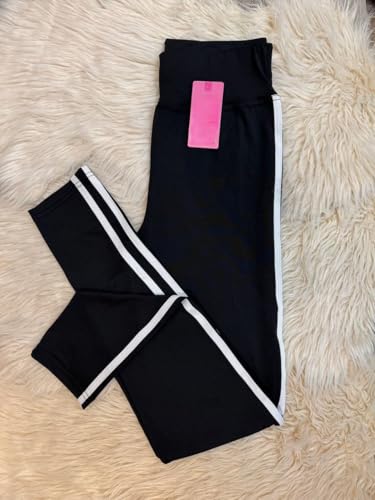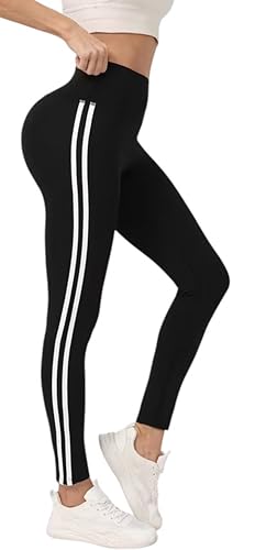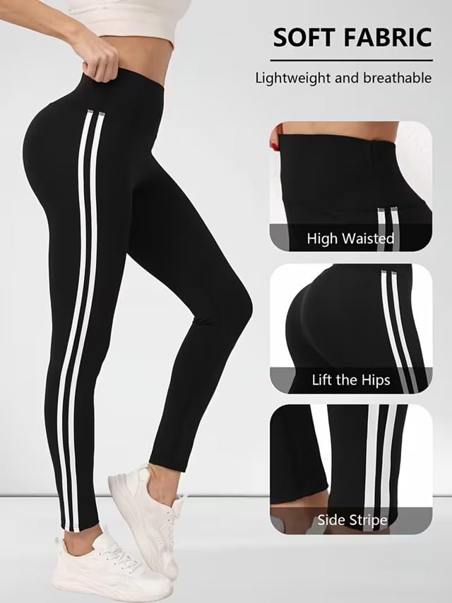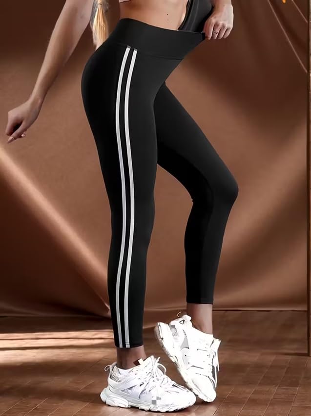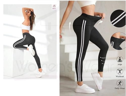 Meza - ليجن رياضي نسائي عالي الخصر، أسود مع خطين أبيض، دراي فيت ليكرا، مناسب لليوغا والتمارين الرياضية والارتداء اليومي، بنطلون للبنات والنساء من ميزا