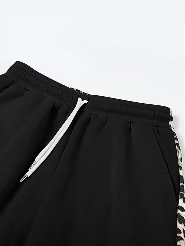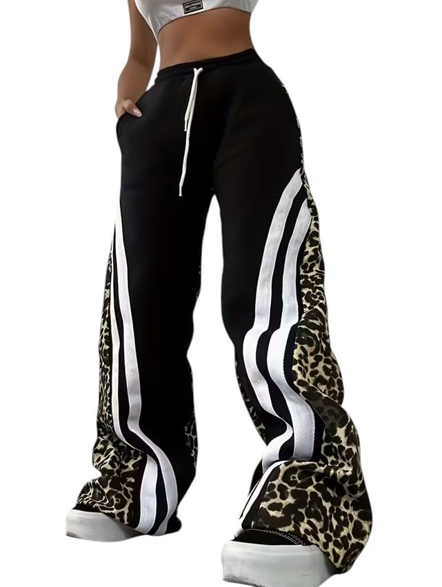 Meza - بنطلون رياضي حريمي واسع بخطين جانبيين وطبعة تايجر – خصر عالي – خامة دايفنج مستورد – كاجوال / جيم / خروج للبنات والنساء من ميزا