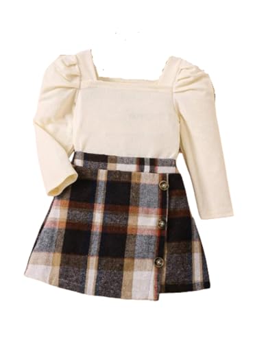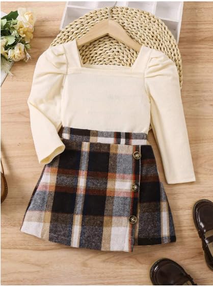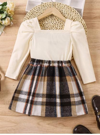 Meza - طقم ملابس بناتى أنيق – بلوزة بأكمام طويلة وتنورة كارو بلمسة عصرية، مناسب للخريف والشتاء من ميزة
