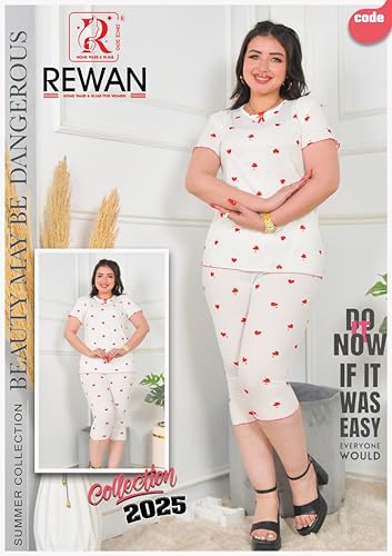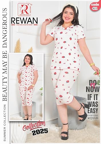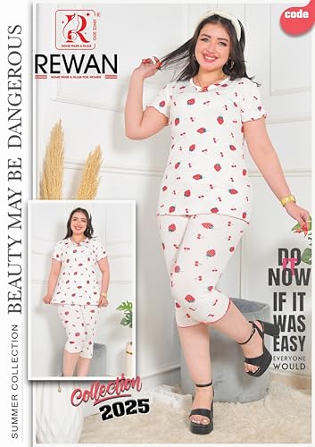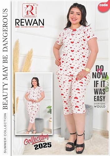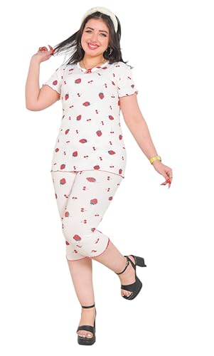 Meza - طقم ريب نص كم برامودا - تصميم فواكه - لون عشوائي - للبنات والنساء من 50 ل 90 كيلو من ميزة