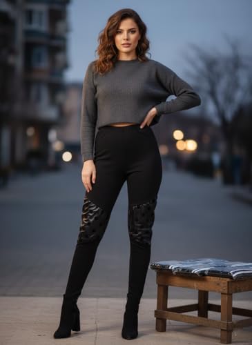 Meza - بنطلون ليجن حريمي بخصر عالي بتصميم جلد أنيق وخامة مرنة للرياضة والاستخدام اليومي للبنات والنساء من ميزة