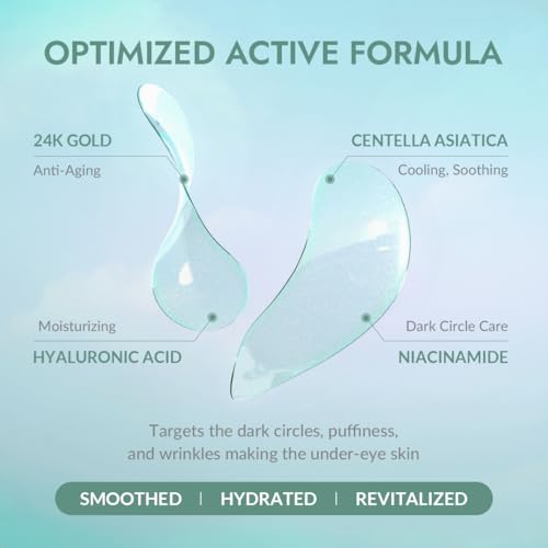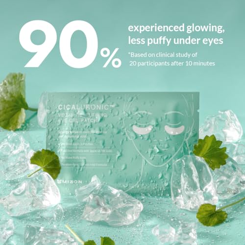 MIZON - رقعة جل نباتية لإزالة الانتفاخ من سيكالورونيك، قناع تحت العين من الذهب عيار 24 قيراط والسيكا، يقلل من انتفاخ العينين والهالات السوداء والتجاعيد (21 زوجًا) من ميزون