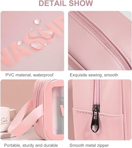 MJ - شنطة غسيل بلاستيكية شفافة مع حواف بينك، شنطة مستحضرات تجميل عملية للسفر للنساء والفتيات، تصميم انيق وعملي لتنظيم الاكسسوارات ومستلزمات النظافة - بينك 30 سم