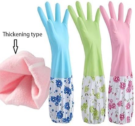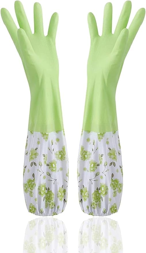 MJ - جوانتي قابلة لإعادة الاستخدام بطول الكوع للمطبخ من ام جيه لغسيل الأطباق والتنظيف وأعمال البستنة والغسيل، أخضر