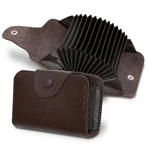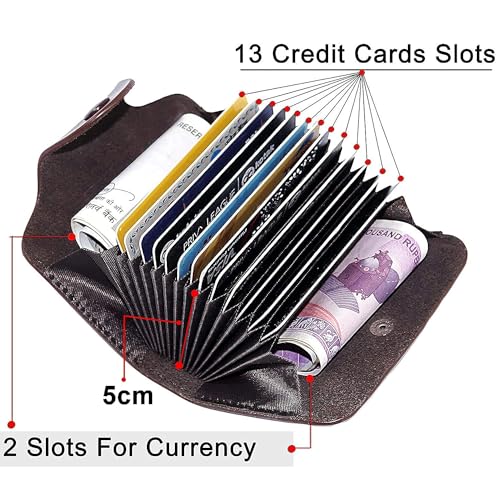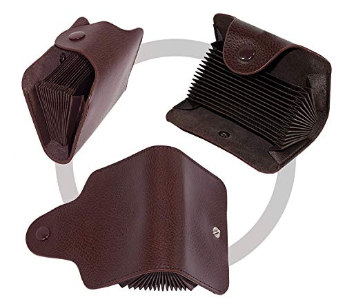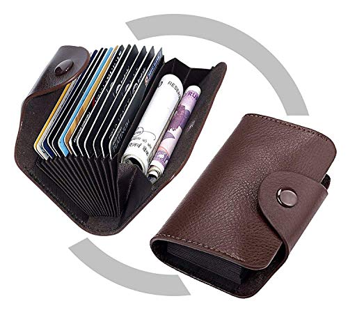 MJ Vision - محفظة حامل بطاقات الائتمان من جلد صناعي بـ13 فتحة للرجال والنساء من ام جيه فيجن (26.6 × 8 × 2.5 سم - بني)