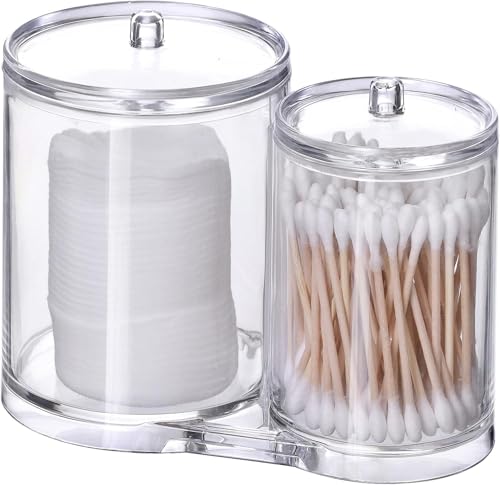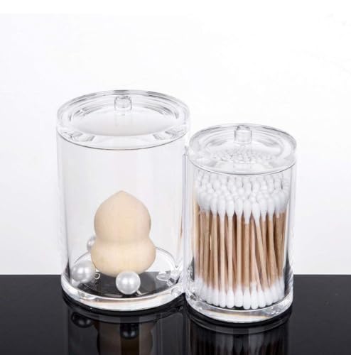 Generic - منظم قطن وودانات أكريليك شفاف 2 خانة تصميم أنيق لتنظيم أدوات المكياج والاكسسوارات سهل التنظيف ومناسب لجميع الديكورات MK