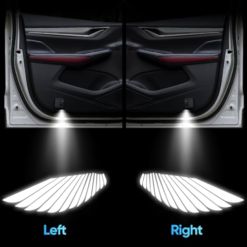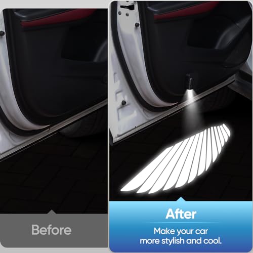 MKJPJUN - جهاز عرض ضوئي ليد لباب السيارة بتصميم جناح ملاك من MKJPJUN، جهاز عرض لشعار العلامة التجارية للسيارة، ضوء ظل شبح، جهاز عرض ضوئي لباب السيارة، عبوة من قطعتين (جناح ملاك)