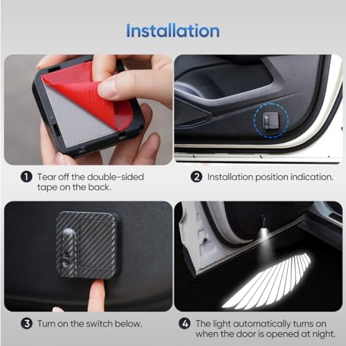 - 1. مصباح ترحيب للسيارة مناسب لجميع السيارات الموجودة في السوق. عندما تفتح باب السيارة، ينفتح زوج من أجنحة الملاك ببطء، مما يجعل سيارتك تبدو رائعة. عندما تغلق باب السيارة، سوف تنطفئ الأضواء أيضًا،