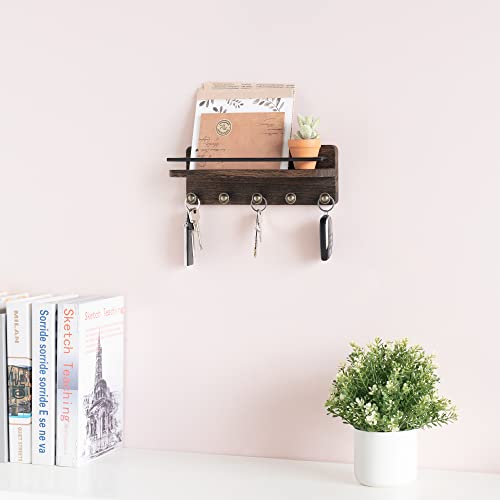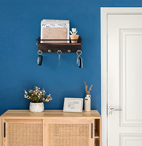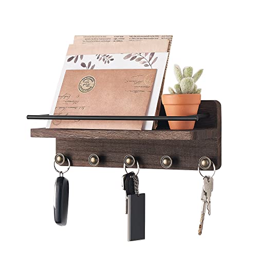 Mkono - ماكونو حامل مفاتيح للديكور الجداري منظم بريد خشبي عائم مع 5 خطافات دائرية لعرض المفاتيح ديكور المنزل لغرفة المعيشة والمدخل وغرفة النوم والحمام والمكتب 10.0 رطل 10.0