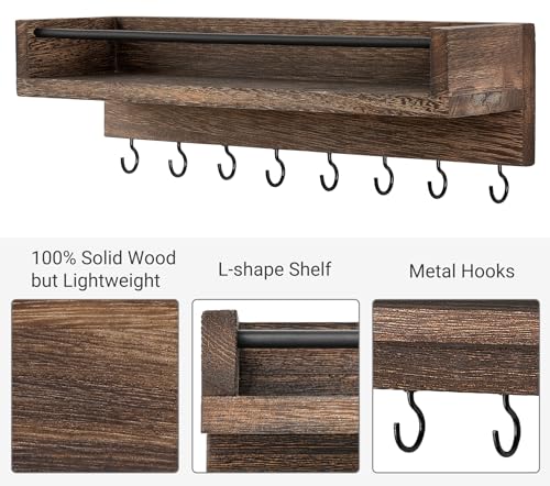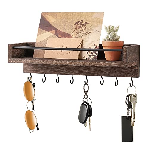 Mkono - ماكونو حامل مفاتيح للتعليق على الحائط من الخشب الريفي مع 8 خطافات لتعليق المفاتيح لغرفة المعيشة والمدخل وغرفة النوم والحمام والمكتب وديكور المنزل، بني