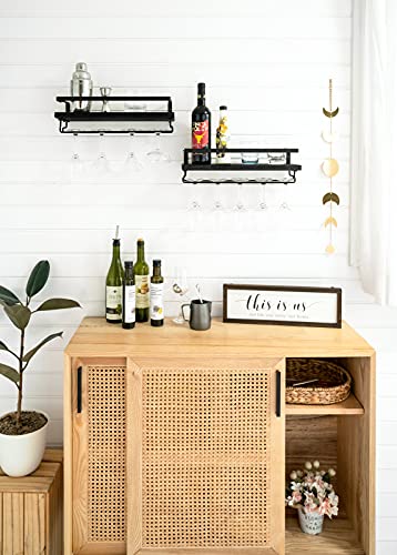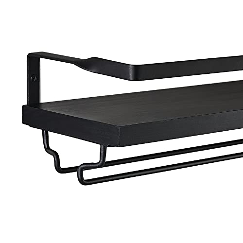 Mkono - ماكونو رف زجاجات نبيذ يثبت على الحائط من ريستيك، مجموعة من قطعتين، اسود، 17 انش ارتفاع × 6.3 انش عرض × 5.1 انش عمق، يحمل زجاجتين، خشب ومعدن، يتطلب التجميع