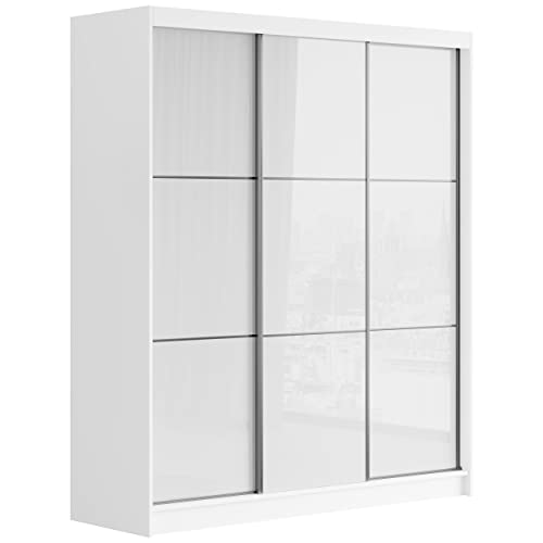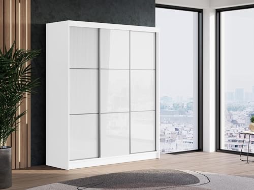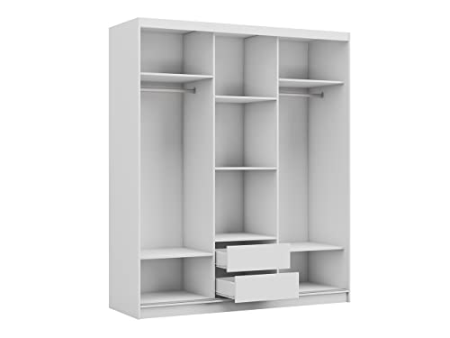 MKS MEBLE - دولاب ملابس فالنسيا من ام كيه اس ميبل - بباب منزلق لغرفة النوم ابيض / تصميم عصري، عرض 180 سم، خشب مُصنع، خزانة