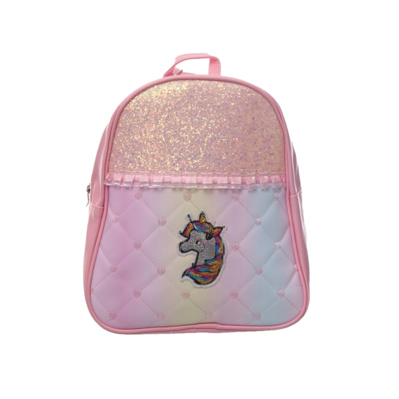 Generic - شنطة ظهر مدرسية للبنات من الجلد الصناعي مع رقعة يونيكورن ومزينة بالترتر، بجزء أمامي لامع وملمس مبطن، خفيفة الوزن وأنيقة ومثالية لرياض الأطفال ومرحلة ما قبل المدرسة من ام ام 11 - متعددة الألوان