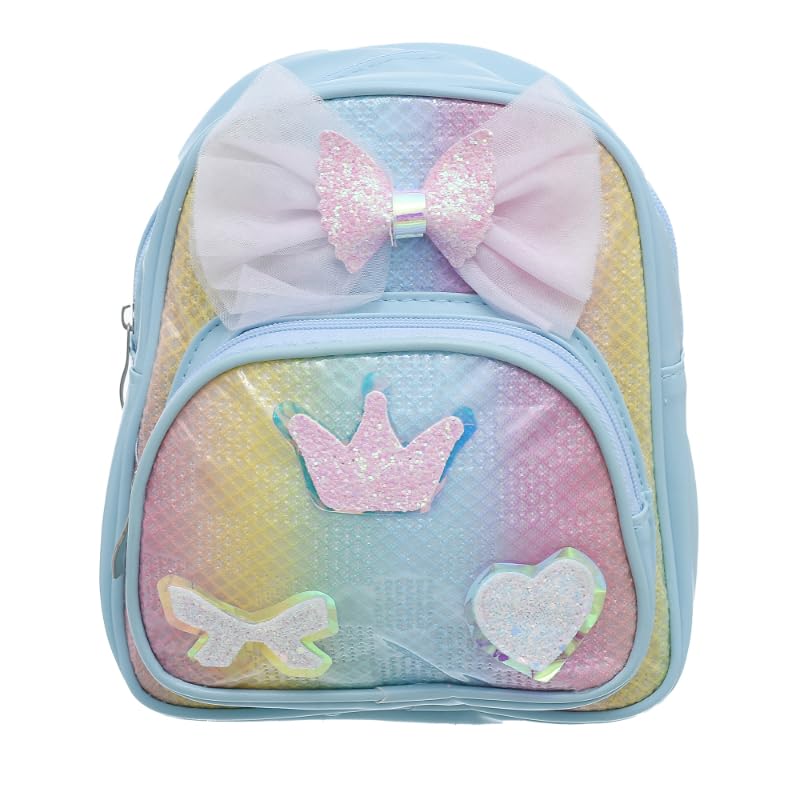 Generic - شنطة ظهر لطيفة من الجلد الصناعي للبنات مع جيب امامي لامع وفيونكة، خفيفة الوزن ومريحة - متعددة الالوان (ايه)