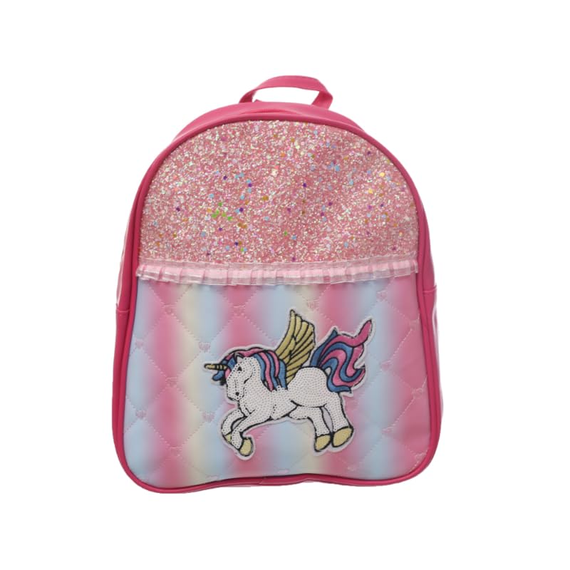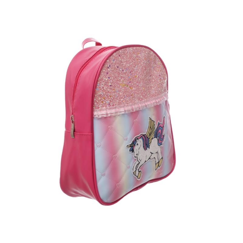 Generic - شنطة ظهر للبنات من الجلد الصناعي من ام ام 7، شنطة مدرسية مع رقعة يونيكورن مزينة بالترتر، لوحة امامية لامعة وملمس مبطن، خفيفة الوزن وانيقة ومثالية لرياض الاطفال ومرحلة ما قبل المدرسة - متعددة الالوان