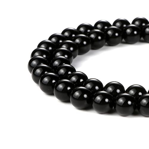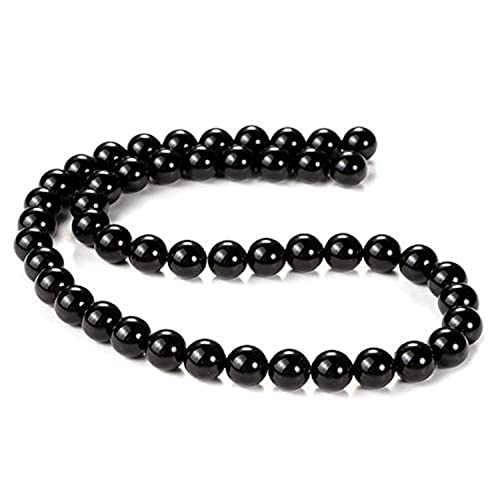 Generic - خرز دائري فضفاض من الاحجار الكريمة العقيق الاسود لصنع المجوهرات 45 - 48 قطعة