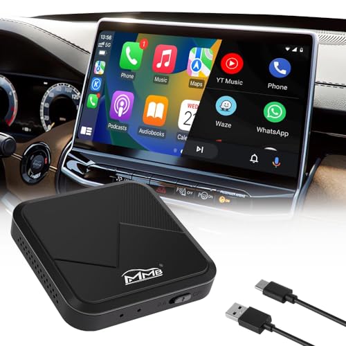 MMB - محول اشارة لاسلكي 2 في 1 ثنائي القناة من ام ام بي، محول تلقائي كاربلاي واندرويد يحول سلكي الى دونجل لاسلكي لجوالات ايفون واندرويد للسيارات مع تشغيل سيارة سلكي او اي ام او اندرويد اوتو (سي ايه)