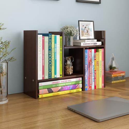 MMdipon - رف كتب خشبي صغير قابل للتعديل من ام ام ديبون، منظم تخزين قابل للتوسيع، رف تخزين مكتبي، رف عرض، (بني)