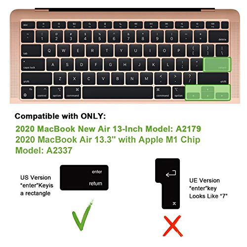 - 【يناسب تمامًا كيبورد ماك بوك اير】★ مصمم لماك بوك اير شاشة ريتينا 13 بوصة (إصدار 2020 بتصميم الكيبورد الأمريكية. الموديلات: A2179)، لماك بوك اير 2020 معالج M1، الموديل: A2337. يرجى التحقق من الموديل الخاص بك لتجنب الشراء الخاطئ!!