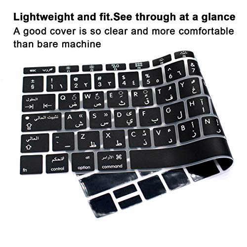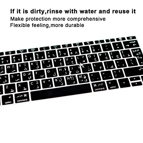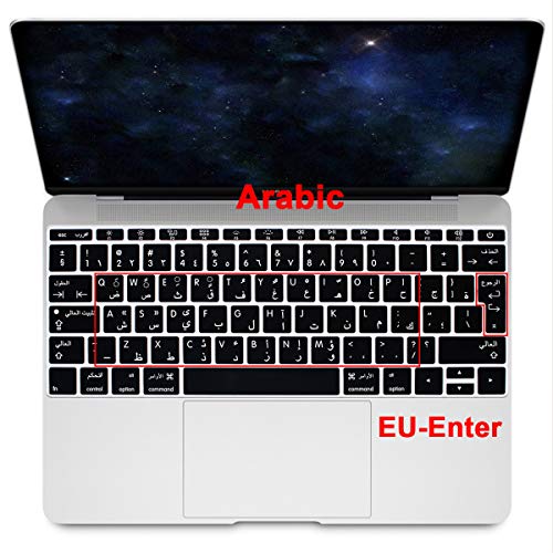 MMDW - غطاء كيبورد لاصق واقي من السيليكون بلغة عربية لماك بوك برو 13 بوصة A1708 A1988 (بدون شريط لمس اصدار 2018 2017 2016) لماك بوك 12 بوصة A1534 (2015) وA1931 (2018) تصميم اوروبي من ام ام دي دبليو