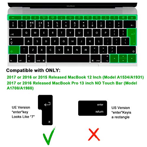 - 【يناسب تمامًا غطاء كيبورد ماك بوك】غطاء كيبورد دقيق لجهاز ماك بوك برو 13 انش بدون شريط لمس 2016-2019 (الموديل: A1708 A1988) وماك بوك 12 انش (الموديل: A1534) (2015) وA1931 (2018)، إصدار الاتحاد الأوروبي.