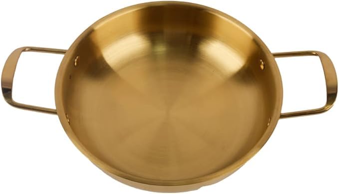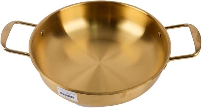 - طاسة استانلس دهبي عالية الجودة وصحية للاستخدام اليومي. تحافظ على نكهة الطعام الأصلية وتمنع تفاعلات غير مرغوبة.