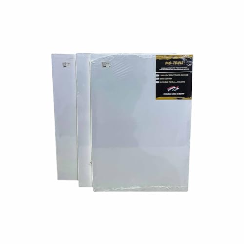 Mo-Tools - مجموعة كانفاس(لوحات قماشيه) مكونه من 3 قطعه مجهزه يدوياً بالكامل بجوده عاليه للرسم والتلوين Mo-Tools، لون ابيض