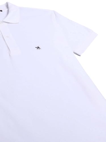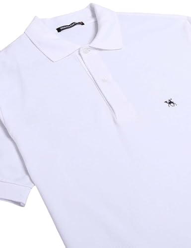 Mobaco - تيشيرت بولو قطن بكم قصير واطراف مضلعة ولوجو امامي على الصدر من موباكو, أبيض, X-Large، للرجال