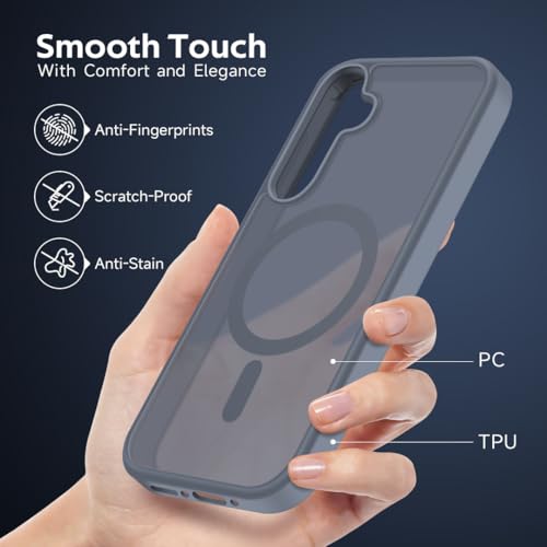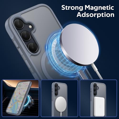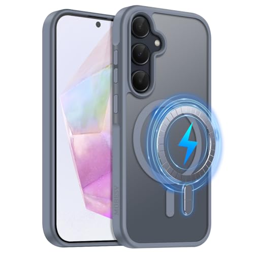 MOBESV - جراب خلفي مغناطيسي نحيف مضاد للصدمات لموبايل سامسونج جالاكسي A55 شبكة الجيل الخامس 5G 6.6 بوصة متوافق مع ماج سيف من موبيسف، رمادي شفاف مطفي