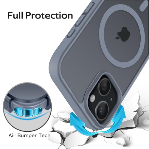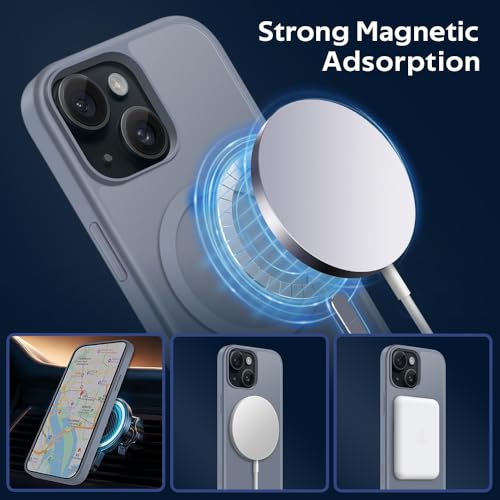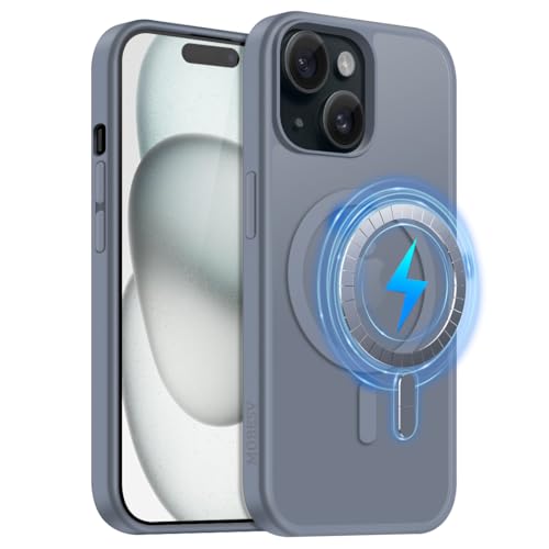 MOBESV - جراب مغناطيسي لموبايل ايفون 15 6.1 بوصة من موبسف، جراب متوافق مع ماج سيف، غطاء خلفي شفاف غير لامع مقاوم للصدمات، رمادي
