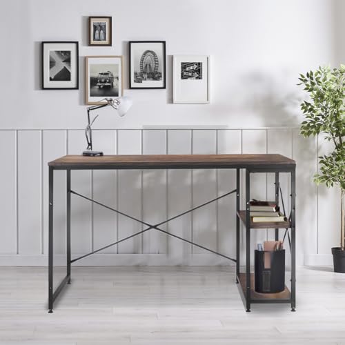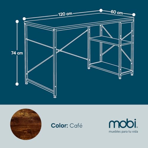 Mobi Muebles para tu Vida - مكتب كمبيوتر خشبي من موبي تشارلستون مع ارفف وهيكل معدني اسود - طول 120 سم - مثالي للمكتب المنزلي