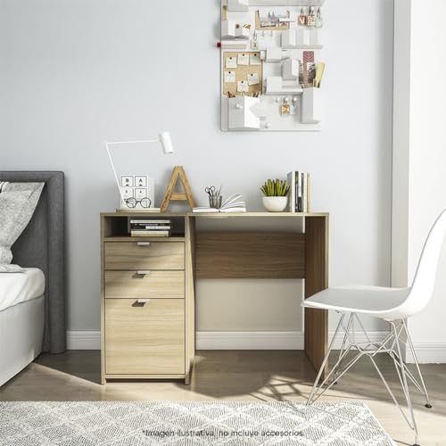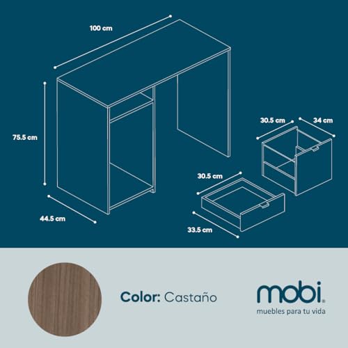 Mobi Muebles para tu Vida - مكتب كمبيوتر خشب طويل نيوتن لمكتب المنزل 3 أدراج من موبي، لون كستنائي، مقاس 1 م