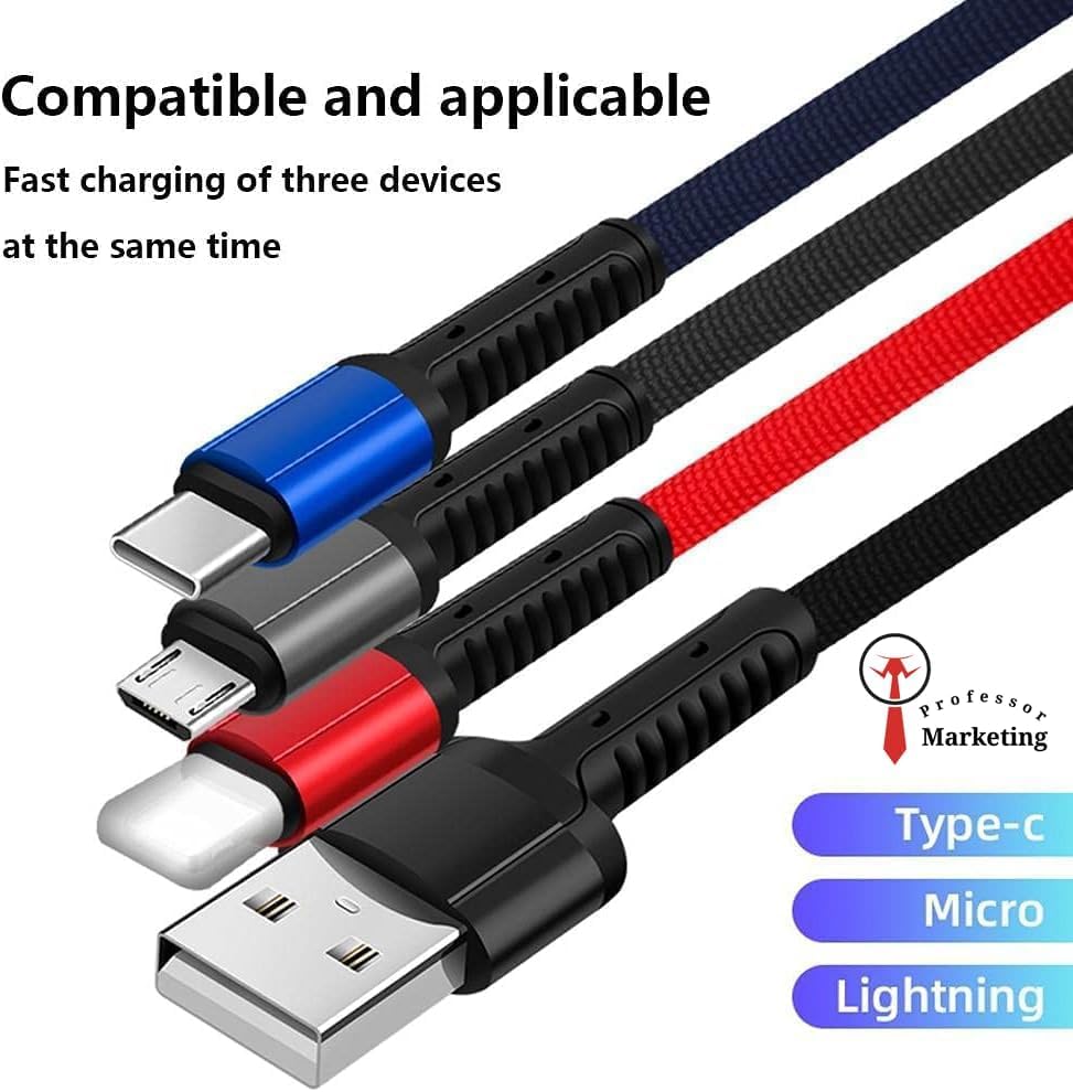 QUEST - كابل شحن لايتنينج سريع 3 في 1 من موبي ريز مصنوع من النايلون المضفر مع موصلات USB ومايكرو ونوع C - سلك شحن سريع ممتاز