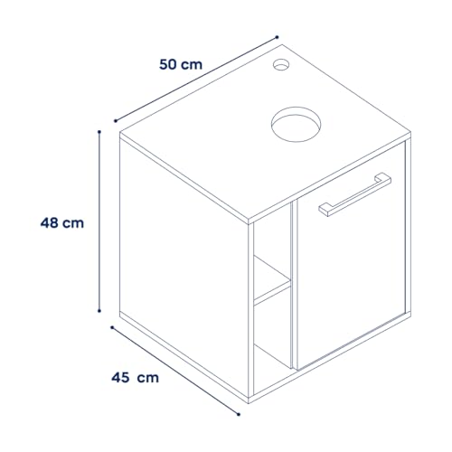 - قياسات الأثاث: الطول 50 سم، العرض 45 سم، الارتفاع 48 سم، فتحة صنبور الخلاط: 3.5 سم و10 سم