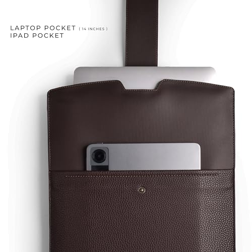 mobigon - حافظة حماية من موبيجون متوافقة مع لابتوب 14 بوصة و آيباد، سليف مصنوع من الجلد الصناعي باللون البني