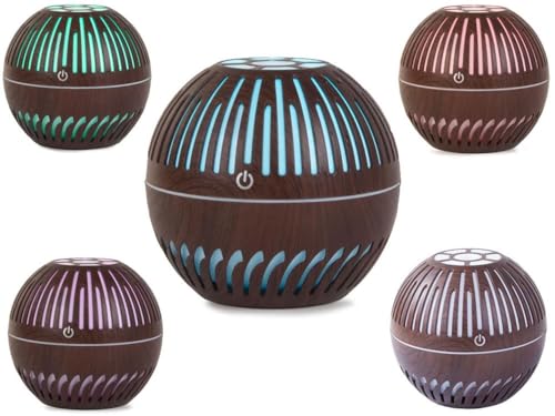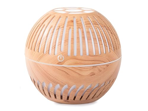 mobigon - مرطب هواء خشبي بارد بالموجات فوق الصوتية لرطوبة الغرفة، موزع روائح وزيوت عطرية للمنزل، 7 أضواء ليلية ملونة، إيقاف تلقائي، مناسب للمنزل والمكتب من موبيجون، سعة 400 مل (ايه لايت وودي)