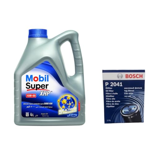 Mobil - زيت محرك من موبيل سوبر بلزوجة 15W-50، سعة 4 لترات، عبوة من قطعتين