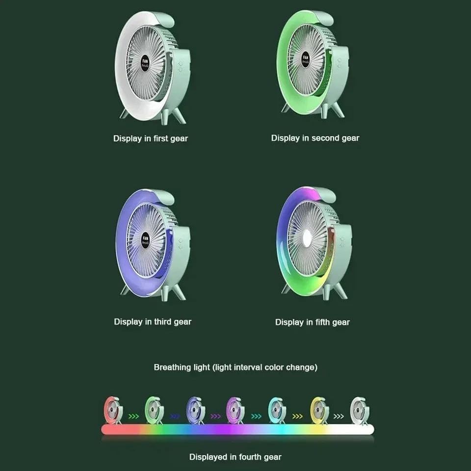 مروحة مكتب متحركة مضيئة – تصميم أنيق، هواء منعش، ألوان متعددةQ