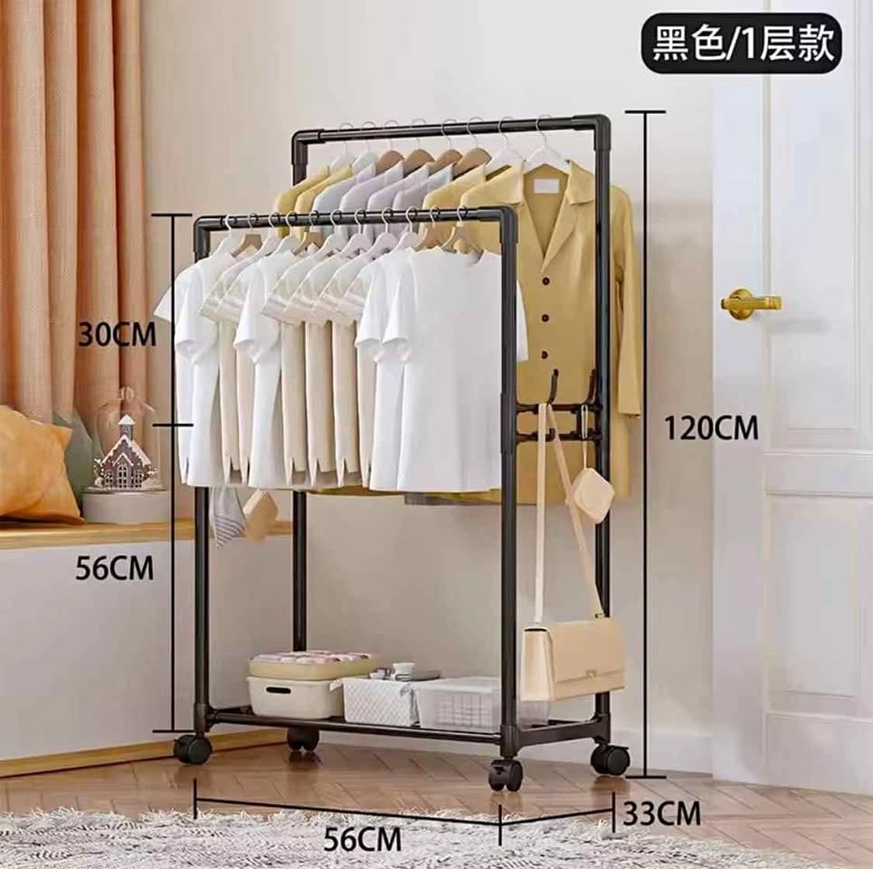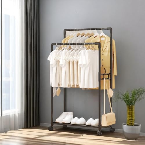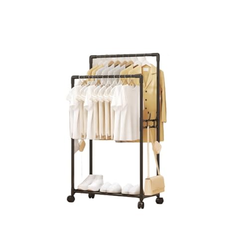 Generic - رف ملابس متحرك مع عجلات، حامل ملابس معدني مزدوج لتعليق الملابس ورف لتخزين الأحذية والقبعات والحقائب، ارتفاع 120 سم، عرض 56 سم (اسود)