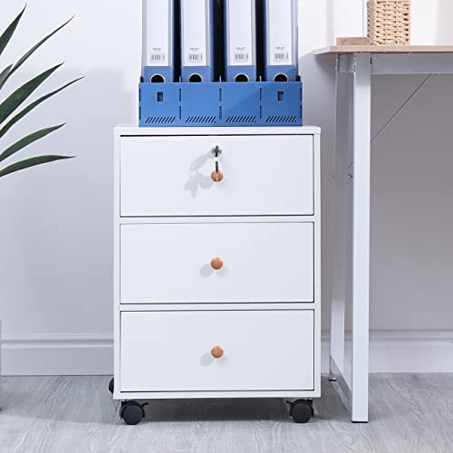 Redd Royal - خزانة تخزين ملفات متحركة قابلة للقفل مع 3 ادراج على عجلات تحت المكتب من الخشب بجانب قاعدة الخزانة للوحدة والمستندات والمنزل والمكتب وحامل الطابعة والادراج الجانبية للملفات، طاولة بجانب السرير على