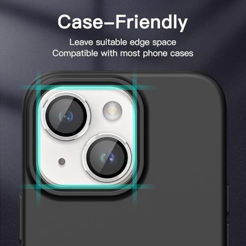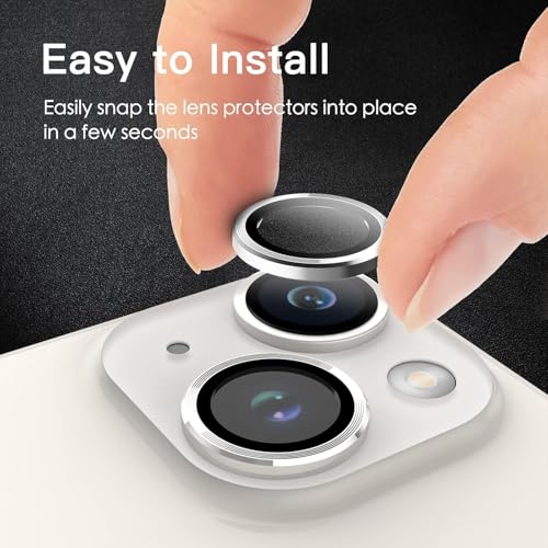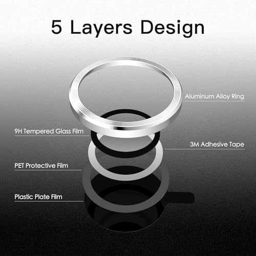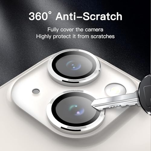 MOBILE MAGIC - واقي حلقي لعدسة كاميرا موبايل مصنوع من خليط الألومنيوم مع طبقة دائرية من الزجاج المقوى لموبايل آبل آيفون 15/ آبل آيفون 15 بلس (فضي)