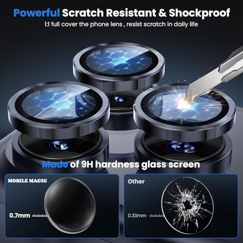 MOBILE MAGIC - واقي عدسة كاميرا بتصميم حلقة كاملة من خلائط الألومنيوم وطبقة زجاج مقوى دائرية لموبايل آبل آيفون 17 برو وآيفون 17 برو ماكس من موبايل ماجيك، أزرق غامق
