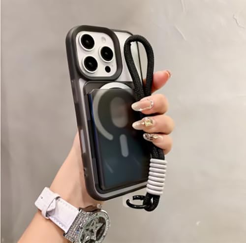 MOBILE MAGIC - جراب حماية مغناطيسي متغير اللون مع سوار معصم ومحفظة كروت ذكية لموبايل آيفون 15 من موبايل ماجيك، أسود