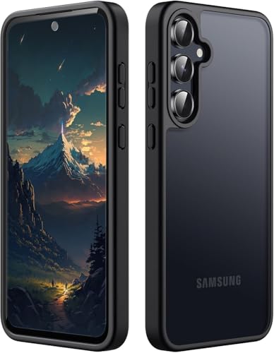 MOBILE MAGIC - جراب موبايل ماجيك ممتص للصدمات بإطار من البولي يوريثين المقاوم للحرارة بلون أسود مطفي مع ظهر شفاف مضاد للخدش لموبايل سامسونج جالاكسي A36 شبكة الجيل الخامس 5G (لون أسود)