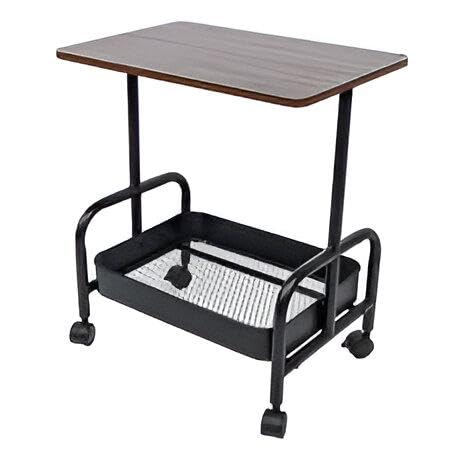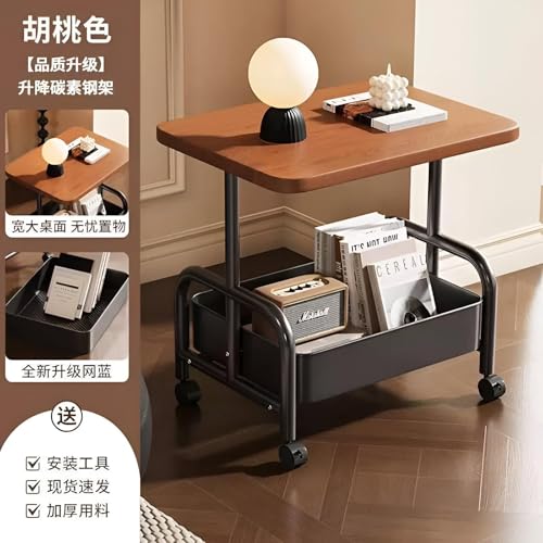 Generic - طاولة سرير متحركة - عربة تخزين من طبقتين مع عجلات 360 درجة، سطح من خشب الجوز واطار معدني اسود انيق لغرفة النوم او المكتب المنزلي