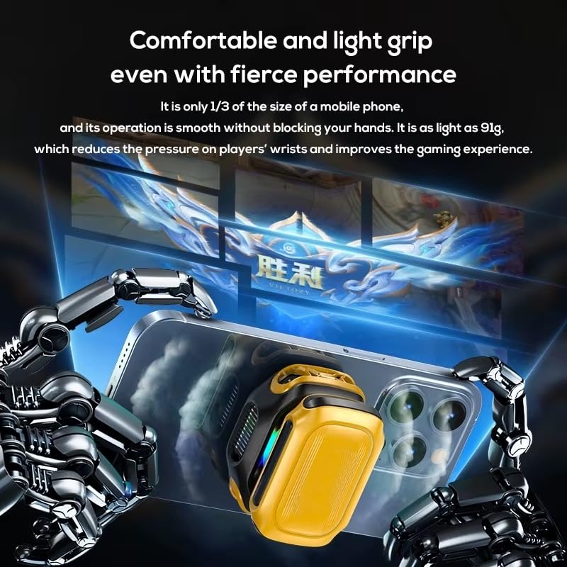 - ✔【لا مزيد من الحرارة الزائدة】- هل يخسر موبايلك المعركة بسبب ارتفاع درجة الحرارة أثناء جلسات اللعب المكثفة؟ أنت في المكان الصحيح. مبرد الموبايل هذا مصمم خصيصًا لمحبي الألعاب على الموبايلات والبث المباشر والمدونين وغيرهم ممن يستخدمون أجهزتهم لفترات طويلة.