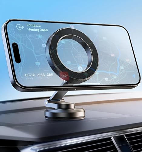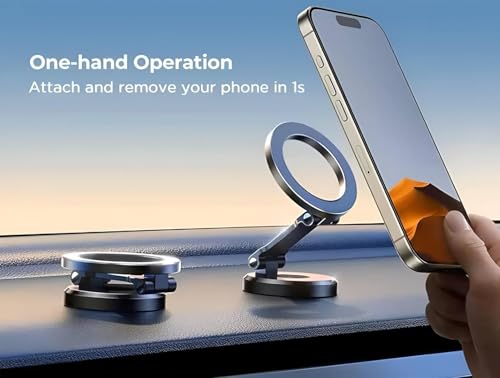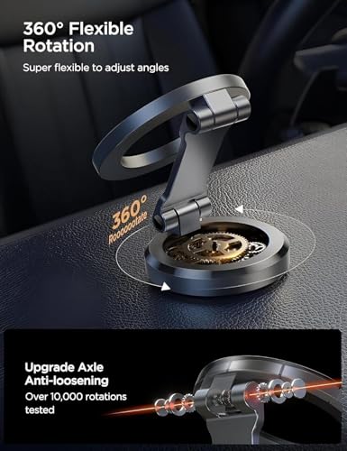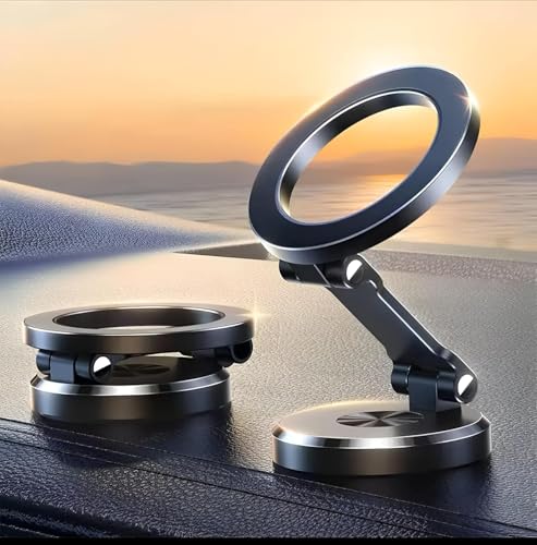 Generic - حامل موبايل مغناطيسي للسيارة، مغناطيس قوي، دوران 360 درجة، لاصق قوي، قابل للطي ومصنوع من المعدن بالكامل، لوحة زجاجية للوحة عدادات السيارة، حامل موبايل للسيارة