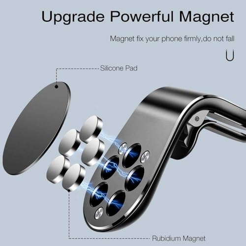 - تثبيت مغناطيسي قوي: يعتمد حامل تثبيت الموبايل هذا على مغناطيس N52 القوي المطور، والذي لن ينزلق أو يهتز أو يسقط فجأة، ويمكنه تثبيت موبايلك كما لو إنه في مجال مغناطيسي قوي. سواء كنت تسير على طريق سريع سلس أو طريق وعر، سيحافظ الحامل على الموضع الدقيق الذي تريده بدون أي حركة أو انزلاق.